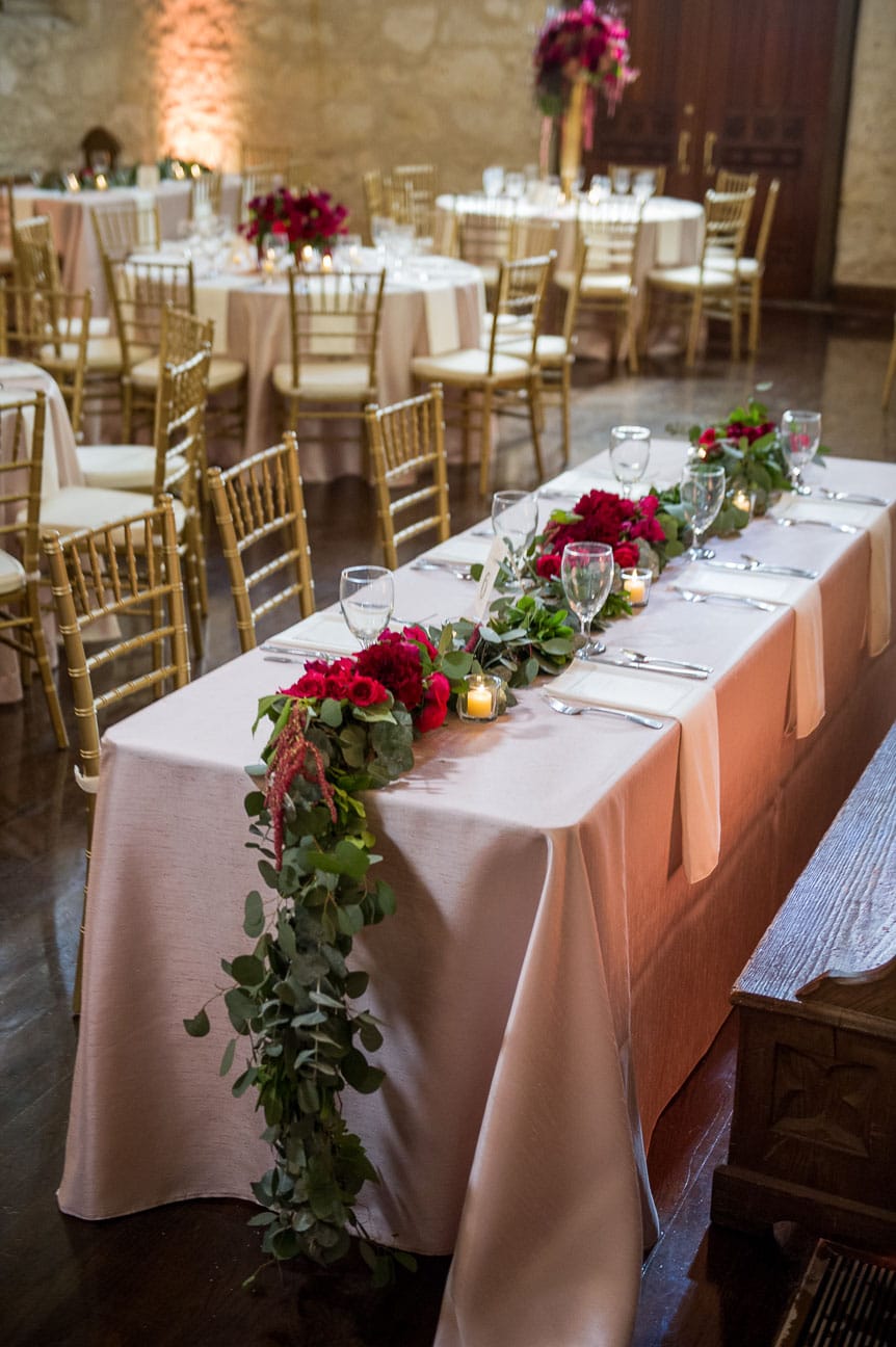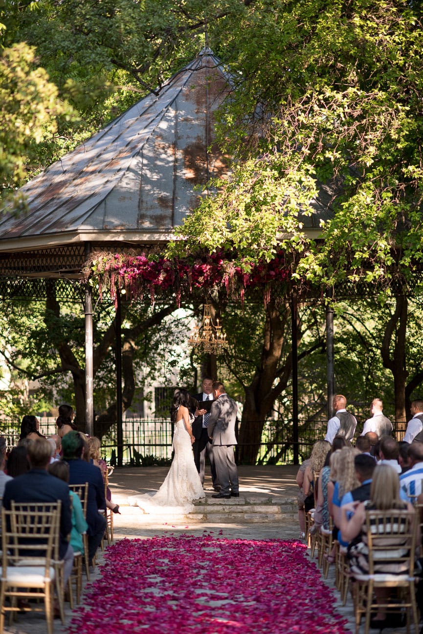 Jamie and Chris allowed us to create a gorgeous wedding and reception for them. The site we selected was the historical Southwest School of Art. We were thrilled when Jamie allowed us to bring in pops of color that really stood out in the lovely gardens of this venue. Photography by: Miranda Laine Photography