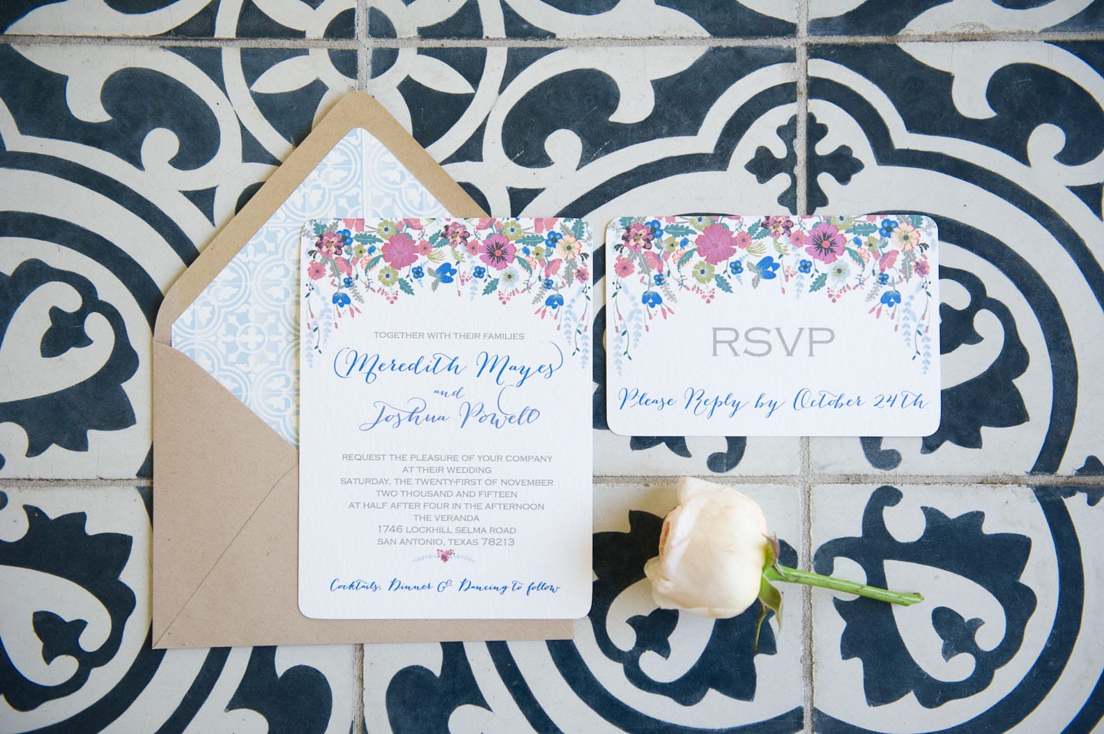 Excited for this wedding featured on Glamour and Grace blog! The venue was The Veranda which is centrally located in the heart of San Antonio with beautiful oak trees and a unique home on the property. The venue offers lots of charm and character that perfectly accented this day. We had so much fun planning and designing this day working very closely with our sweet bride. Creating her custom wedding invites was one of our favorite parts as we really wanted them to tie into the over look for the entire day that the guests would witness. Check out the wedding featured here on Glamour & Grace! CLICK HERE